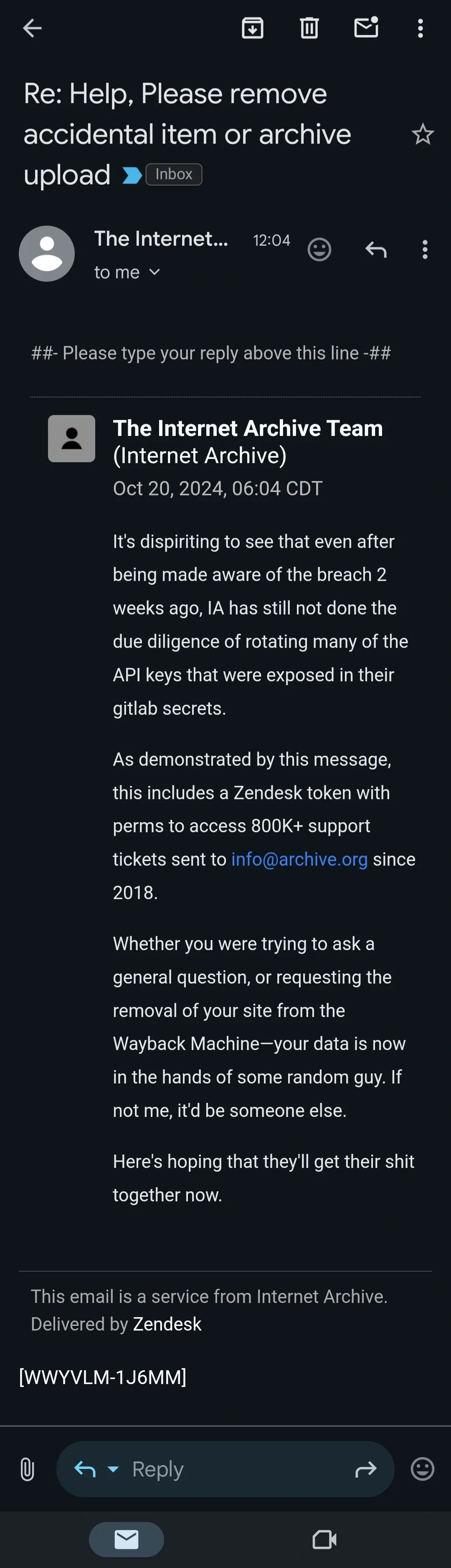 Still not sure what you’re talking about… Is someone going to ask IA for payment related to the zendesk email?