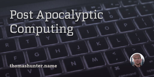 arrow-up141arrow-down1external-linkPost Apocalyptic Computing - Thomas Hunter IIthomashunter.nametinosaurier@feddit.org to Technology@lemmy.worldEnglish · 1 year agomessage-square2linkfedilink