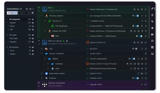I’m proud to share major development updates for XPipe, a connection hub that allows you to access your entire server infrastructure from your local desktop. It can make your life easier when working with any kind of servers by eliminating many of the tedious tasks that come up when interacting with remote systems, either from the terminal or from a graphical interface.