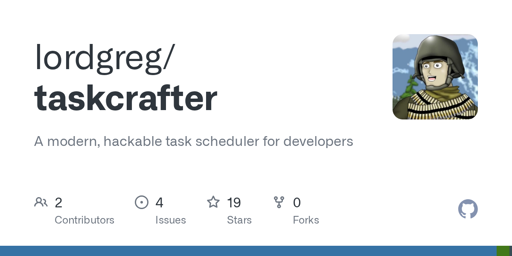 breakpointx@lemmy.world to Open Source@lemmy.mlEnglish · 9 months ago🛠️ TaskCrafter - CLI task schedulerplus-squaregithub.comexternal-linkmessage-square0linkfedilinkarrow-up11arrow-down10